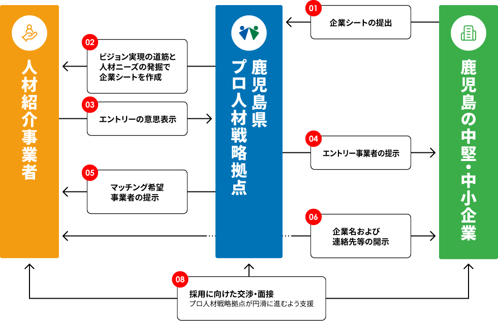 - 拠点は、人材紹介事業者に企業情報シートと企業作成の求人票を提供します。